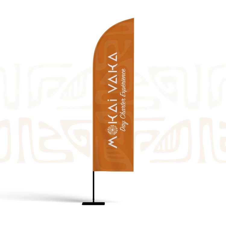 Couleurs chaleureuses, symboles culturels et lignes fluides traduisent la force, l’accueil et l’esprit d’évasion portés par Mokai Vaka.
