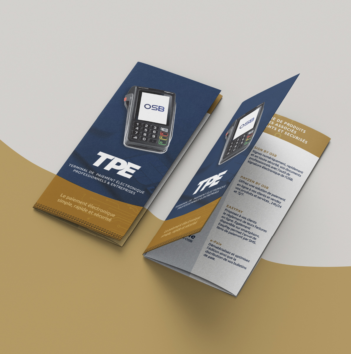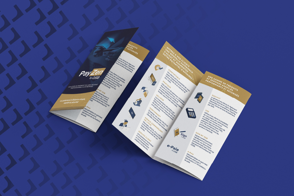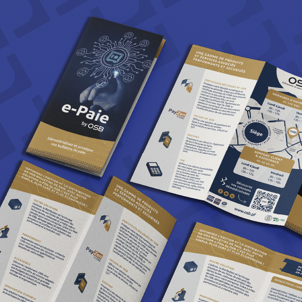 Chaque flyer a été conçu sur-mesure pour présenter avec clarté et impact les offres phares d’OSB — e-Paie, TPE, ou encore PayZen — en mettant en avant les bénéfices et fonctionnalités propres à chacune de ces solutions.